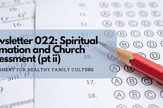 Newsletter 022: Spiritual Formation and Church Assessment (pt ii)